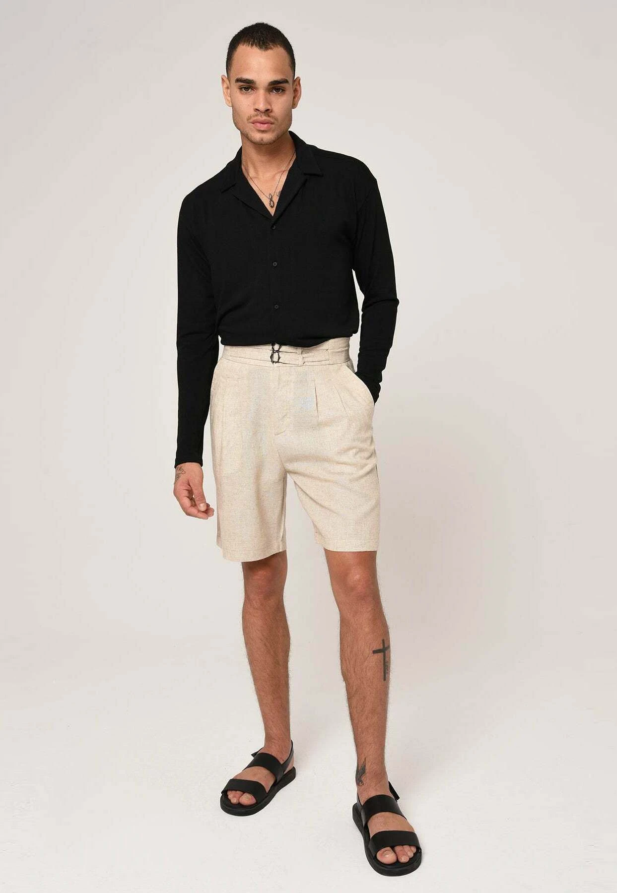 High Waist Buckle Closure – Shorts – Beige