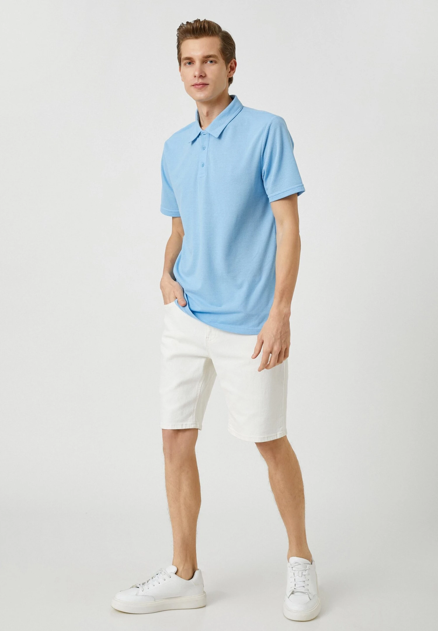 Koton Basic Neck Buttoned Short Sleeve – Polo – Blue
