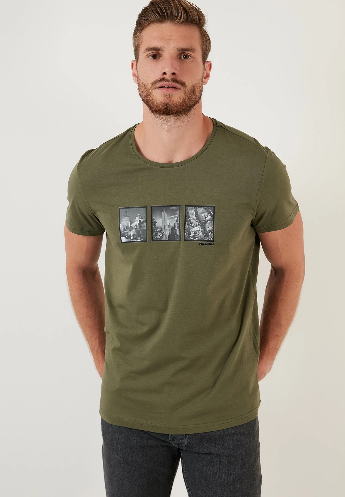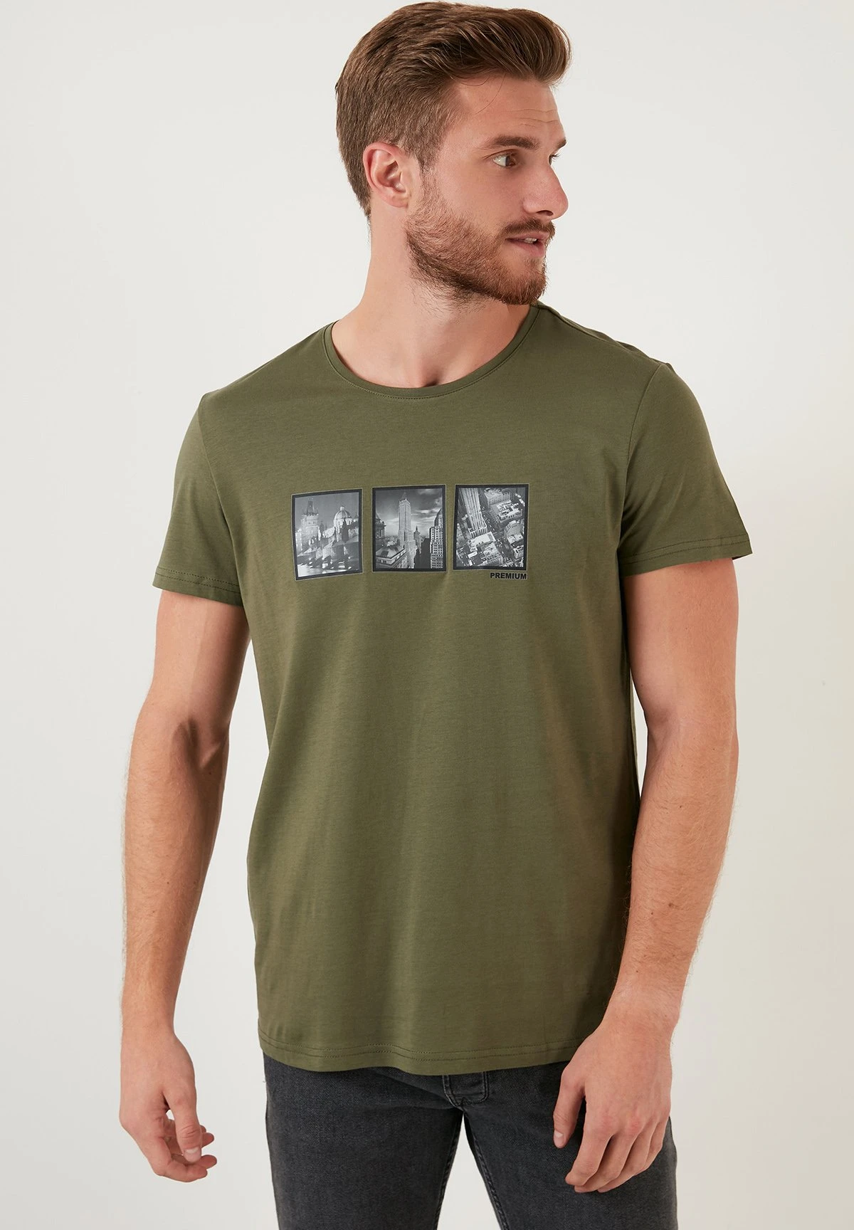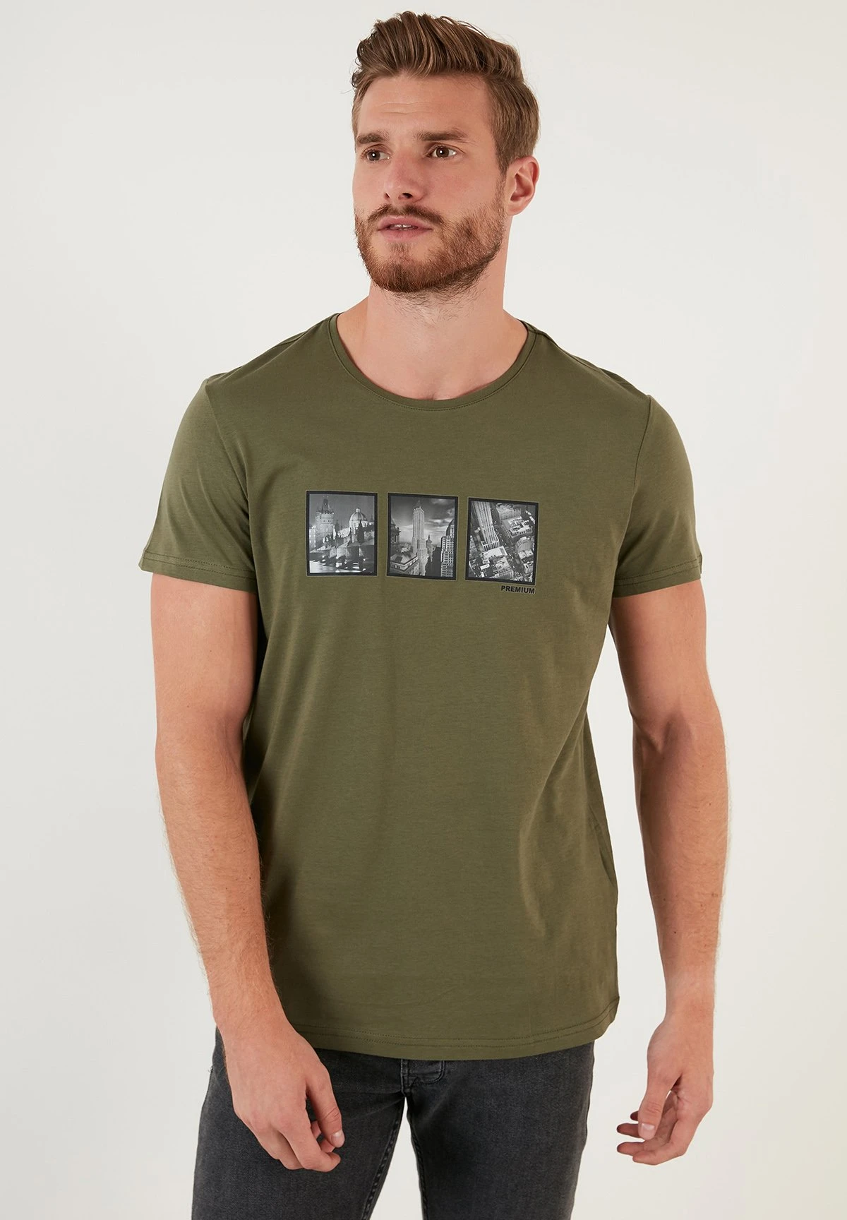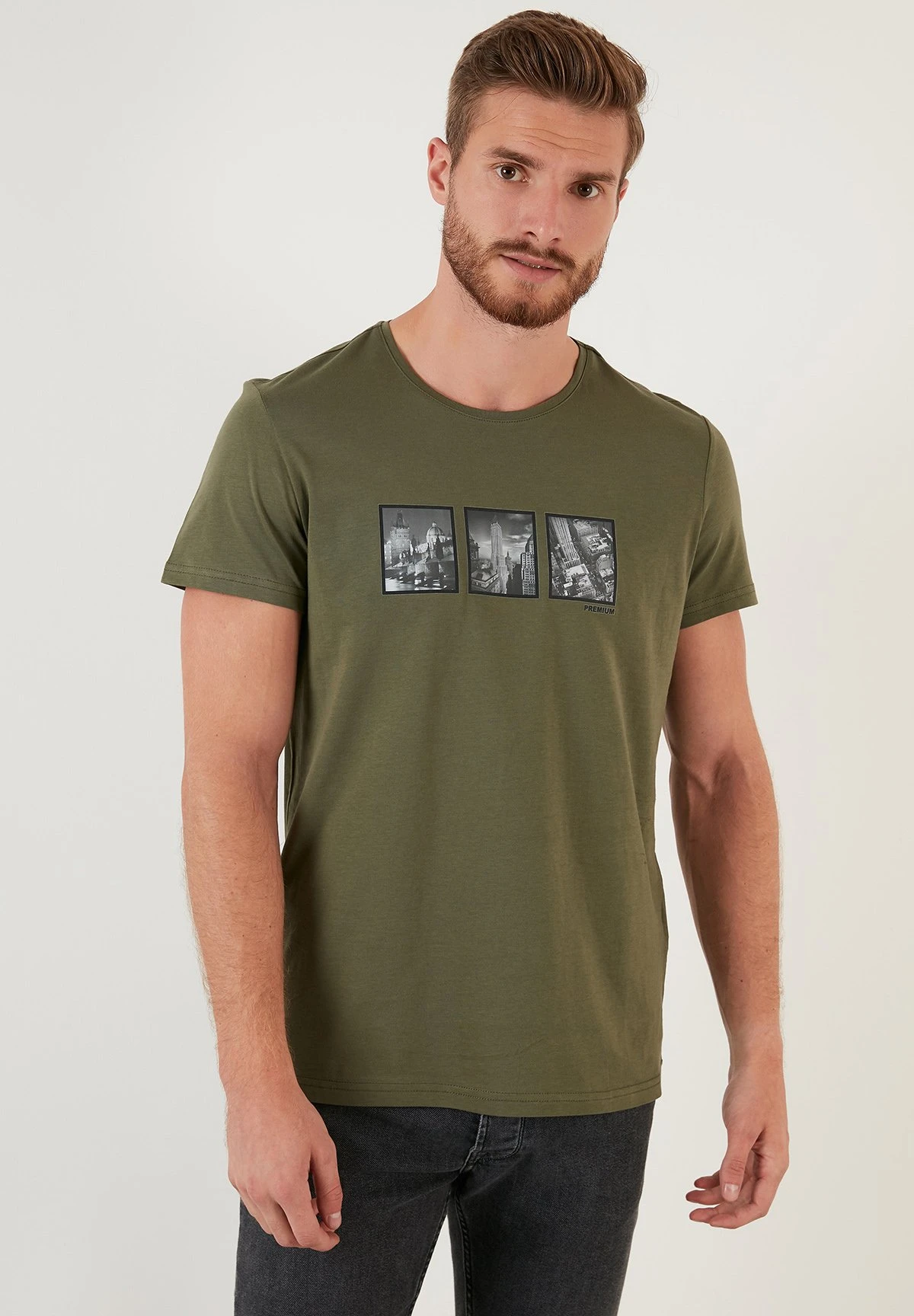 Slim Fit – Camiseta Estampada – Khaki